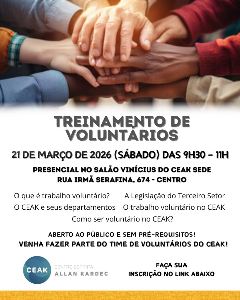 🚨 O Curso será presencial no dia 21 de Março (sábado), das 9h30 às 11h, no CEAK Sede (Rua Irmã Serafina, 674 – Centro)😉